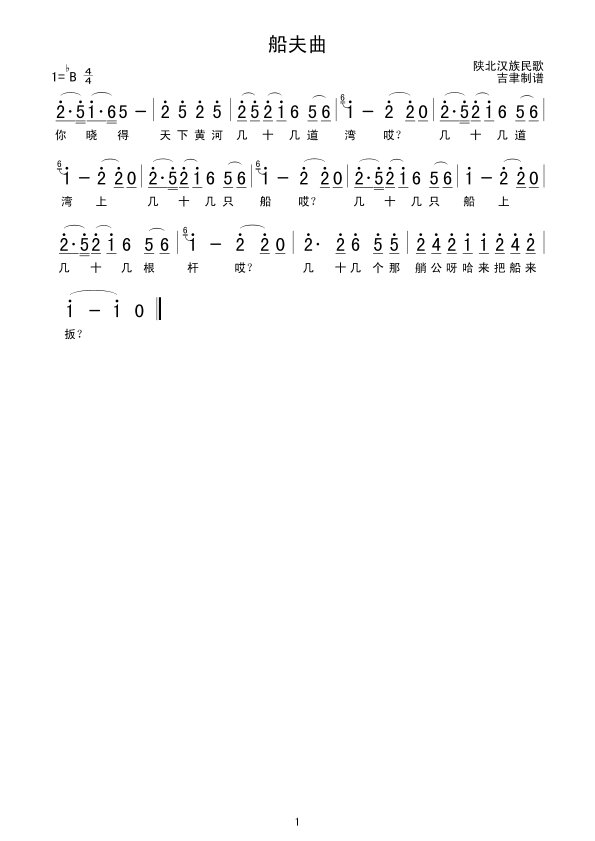 船夫曲简谱上传者为网友上传,原创作者为网络转载,歌曲原唱歌手为佚名,本简谱为图片格式,表现形式为,音乐性质为流行金曲。
