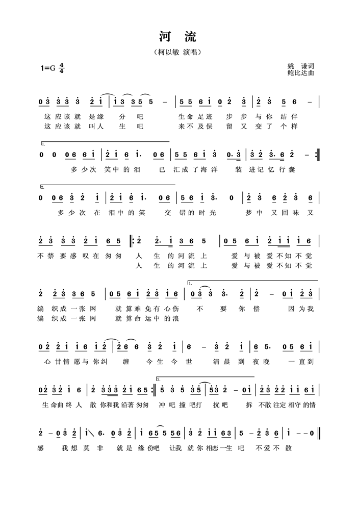 河流简谱上传者为网友上传,原创作者为网络转载,歌曲原唱歌手为佚名,本简谱为图片格式,表现形式为,音乐性质为流行金曲。