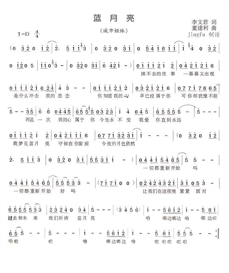 蓝月亮简谱上传者为网友上传,原创作者为网络转载,歌曲原唱歌手为佚名,本简谱为图片格式,表现形式为,音乐性质为流行金曲。