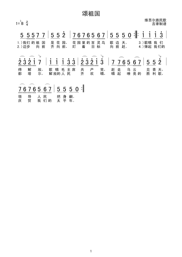 颂祖国简谱上传者为网友上传,原创作者为网络转载,歌曲原唱歌手为佚名,本简谱为图片格式,表现形式为,音乐性质为流行金曲。
