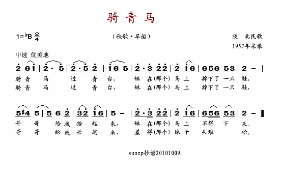 骑青马简谱上传者为网友上传,原创作者为网络转载,歌曲原唱歌手为佚名,本简谱为图片格式,表现形式为,音乐性质为流行金曲。