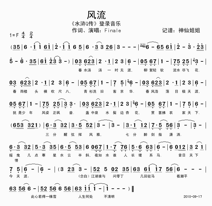 风流简谱上传者为网友上传,原创作者为网络转载,歌曲原唱歌手为佚名,本简谱为图片格式,表现形式为,音乐性质为流行金曲。