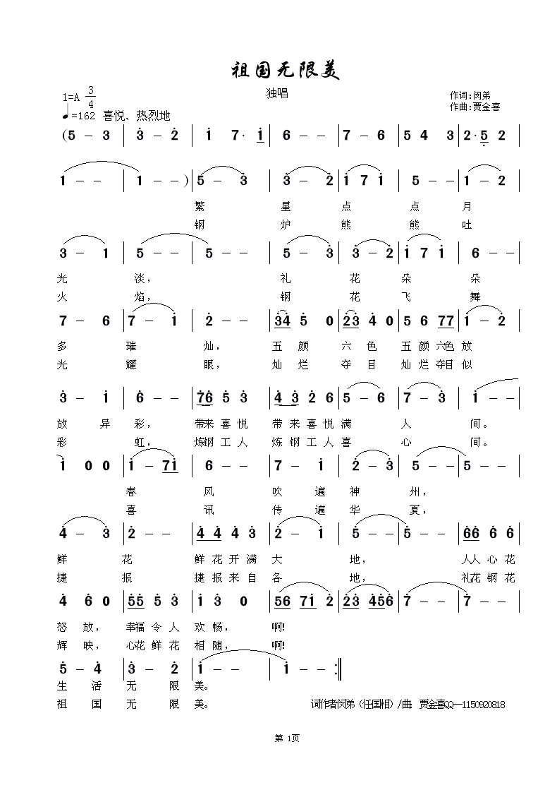 祖国无限美简谱上传者为网友上传,原创作者为网络转载,歌曲原唱歌手为佚名,本简谱为图片格式,表现形式为,音乐性质为流行金曲。