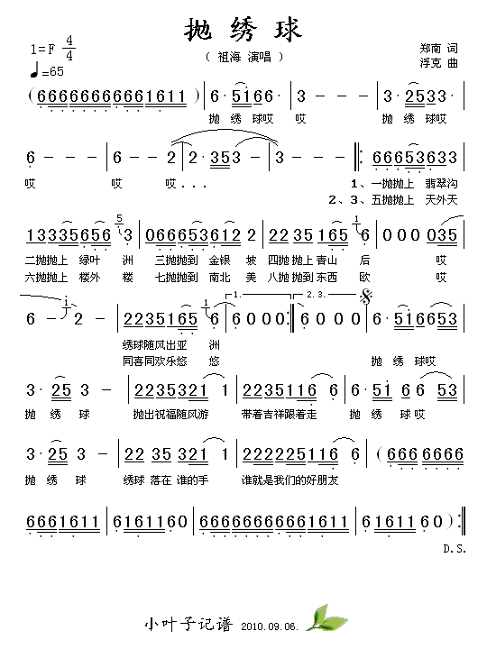 抛绣球简谱上传者为网友上传,原创作者为网络转载,歌曲原唱歌手为佚名,本简谱为图片格式,表现形式为,音乐性质为流行金曲。