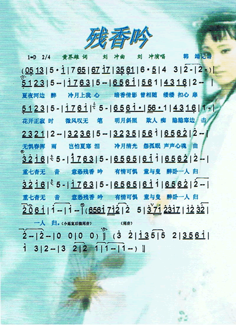 残香吟简谱上传者为网友上传,原创作者为网络转载,歌曲原唱歌手为佚名,本简谱为图片格式,表现形式为,音乐性质为流行金曲。