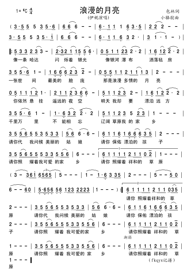 浪漫的月亮简谱上传者为网友上传,原创作者为网络转载,歌曲原唱歌手为佚名,本简谱为图片格式,表现形式为,音乐性质为流行金曲。