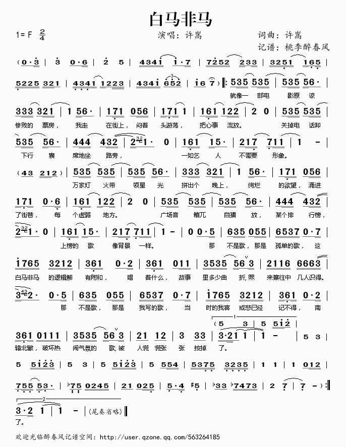 白马非马简谱上传者为网友上传,原创作者为网络转载,歌曲原唱歌手为佚名,本简谱为图片格式,表现形式为,音乐性质为流行金曲。