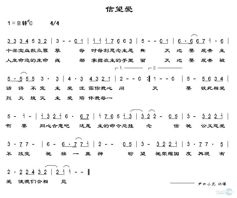 信望爱简谱上传者为网友上传,原创作者为网络转载,歌曲原唱歌手为佚名,本简谱为图片格式,表现形式为,音乐性质为流行金曲。