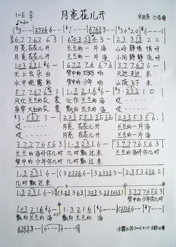 月亮花儿开简谱上传者为网友上传,原创作者为网络转载,歌曲原唱歌手为佚名,本简谱为图片格式,表现形式为,音乐性质为流行金曲。