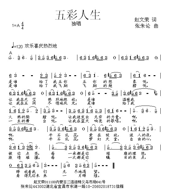 五彩人生简谱上传者为网友上传,原创作者为网络转载,歌曲原唱歌手为佚名,本简谱为图片格式,表现形式为,音乐性质为流行金曲。
