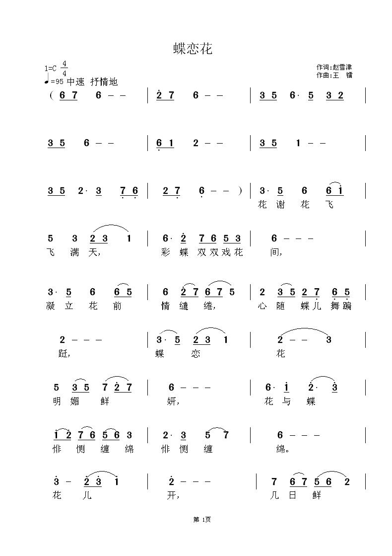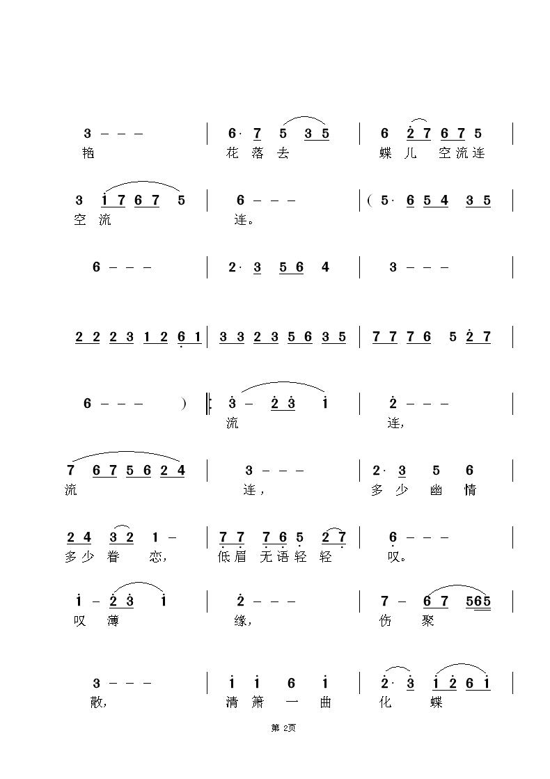 蝶恋花简谱上传者为网友上传,原创作者为网络转载,歌曲原唱歌手为佚名,本简谱为图片格式,表现形式为,音乐性质为流行金曲。