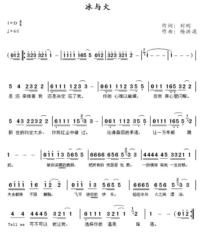 冰与火简谱上传者为网友上传,原创作者为网络转载,歌曲原唱歌手为佚名,本简谱为图片格式,表现形式为,音乐性质为流行金曲。