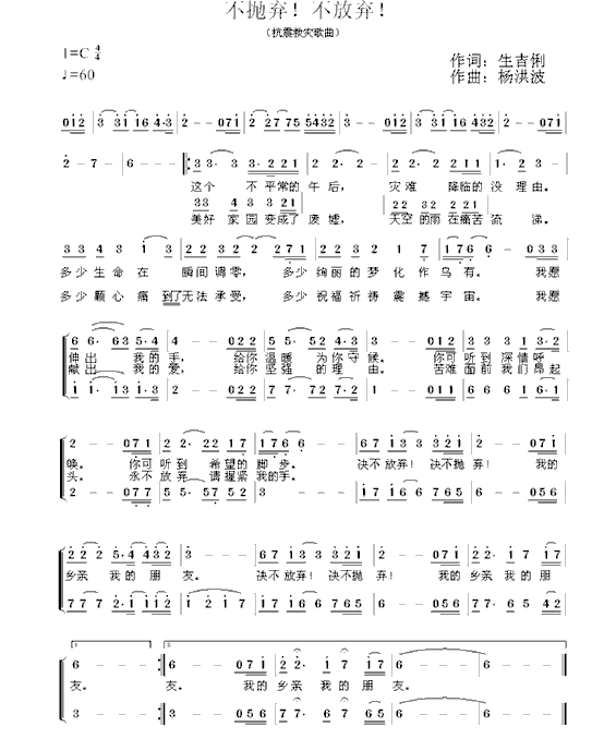 不抛弃!不放弃!简谱上传者为网友上传,原创作者为网络转载,歌曲原唱歌手为佚名,本简谱为图片格式,表现形式为,音乐性质为流行金曲。