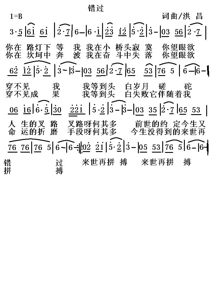 错过简谱上传者为网友上传,原创作者为网络转载,歌曲原唱歌手为佚名,本简谱为图片格式,表现形式为,音乐性质为流行金曲。