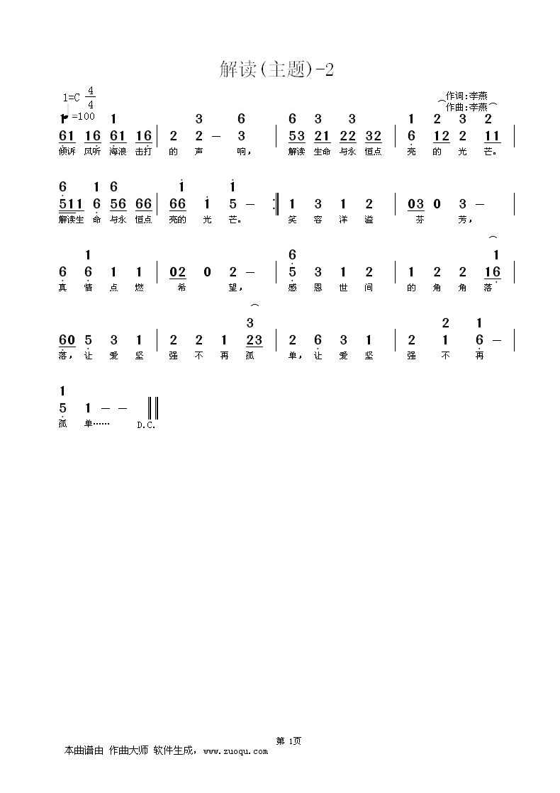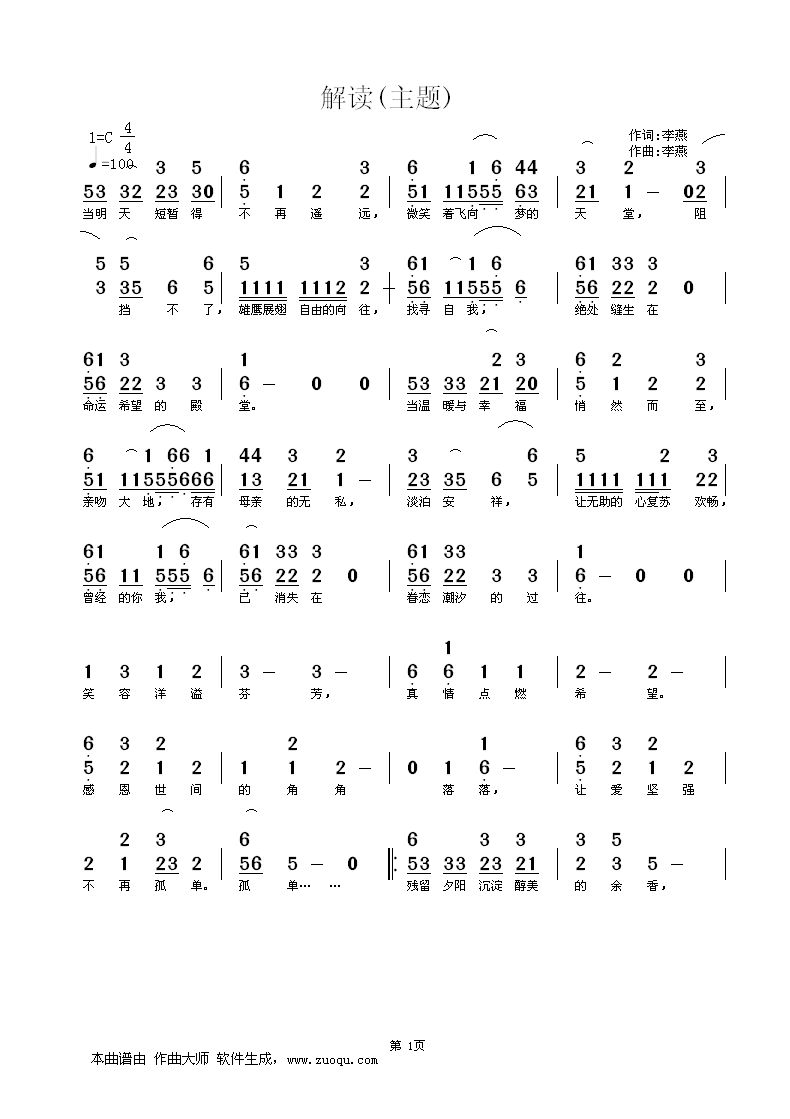 解读简谱上传者为网友上传,原创作者为网络转载,歌曲原唱歌手为佚名,本简谱为图片格式,表现形式为,音乐性质为流行金曲。