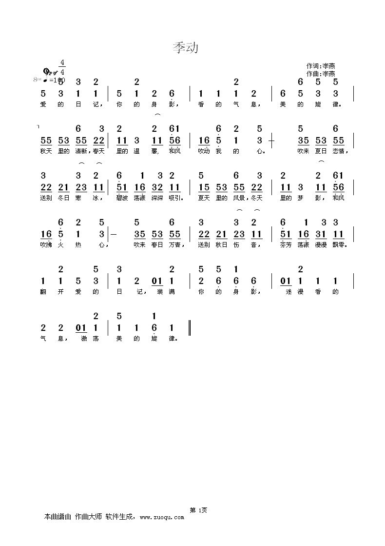 季动简谱上传者为网友上传,原创作者为网络转载,歌曲原唱歌手为佚名,本简谱为图片格式,表现形式为,音乐性质为流行金曲。