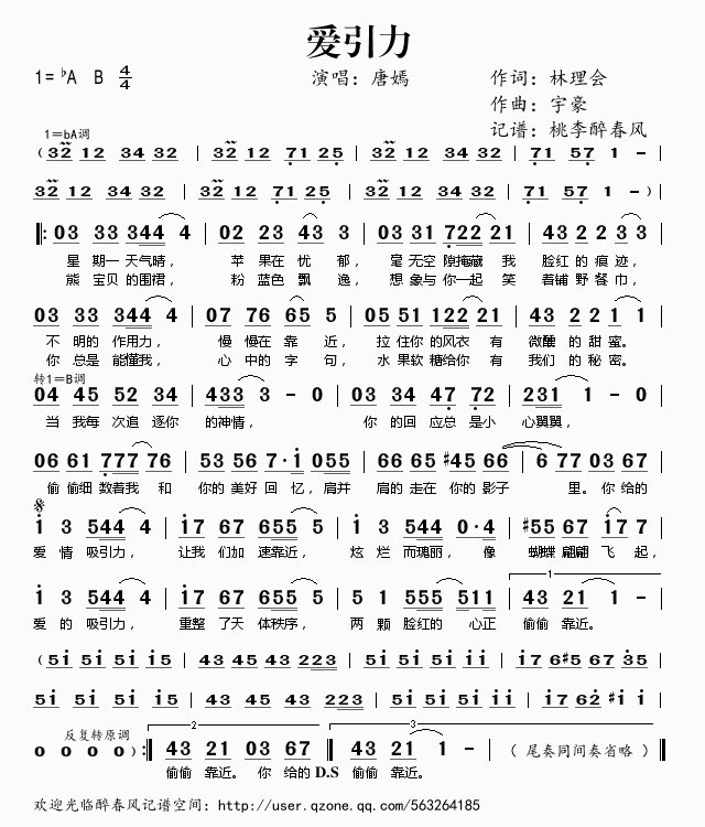爱引力简谱上传者为网友上传,原创作者为网络转载,歌曲原唱歌手为佚名,本简谱为图片格式,表现形式为,音乐性质为流行金曲。