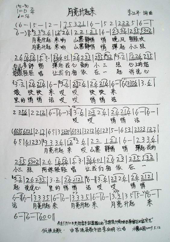 月亮升起来简谱上传者为网友上传,原创作者为网络转载,歌曲原唱歌手为佚名,本简谱为图片格式,表现形式为,音乐性质为流行金曲。