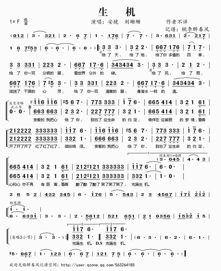 生机简谱上传者为网友上传,原创作者为网络转载,歌曲原唱歌手为佚名,本简谱为图片格式,表现形式为,音乐性质为流行金曲。