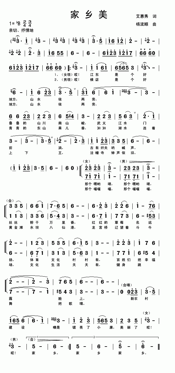 家乡美简谱上传者为网友上传,原创作者为网络转载,歌曲原唱歌手为佚名,本简谱为图片格式,表现形式为,音乐性质为流行金曲。