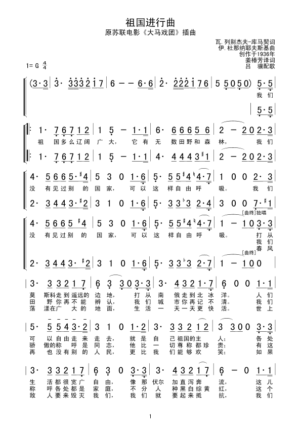 您现在的位置:爱曲谱 > 简谱 > 祖国进行曲