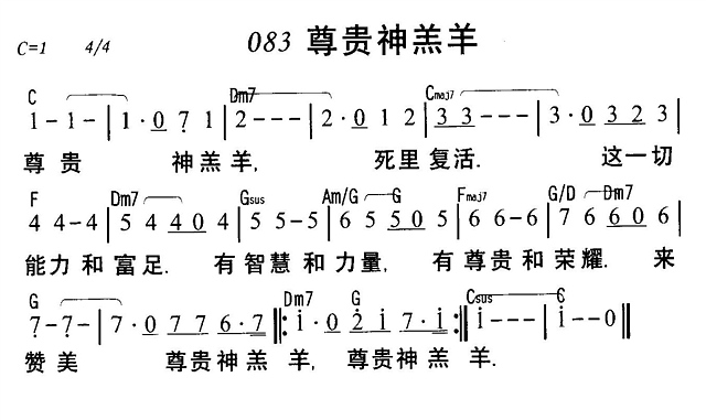 尊贵神羔羊简谱上传者为网友上传,原创作者为网络转载,歌曲原唱歌手为佚名,本简谱为图片格式,表现形式为,音乐性质为流行金曲。