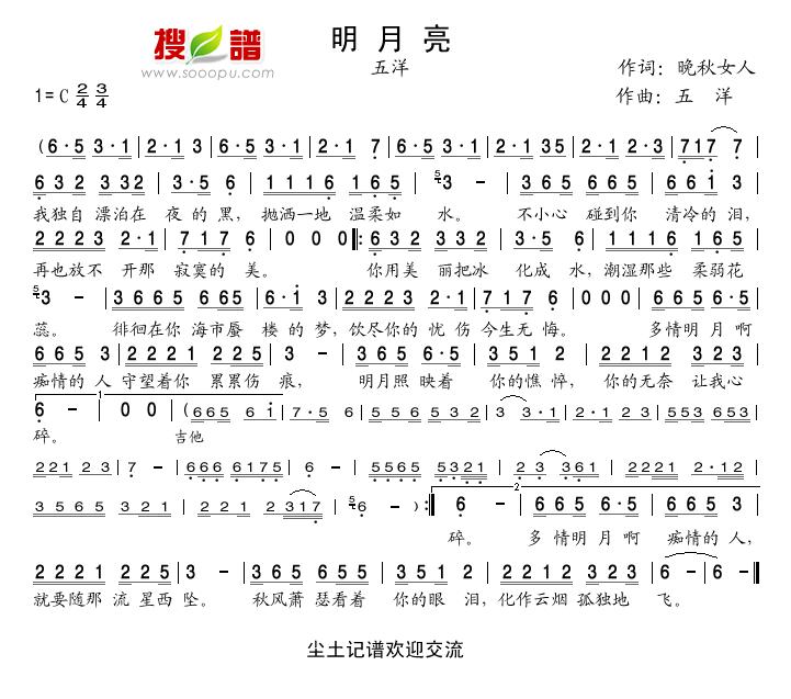 明月亮简谱上传者为网友上传,原创作者为网络转载,歌曲原唱歌手为佚名,本简谱为图片格式,表现形式为,音乐性质为流行金曲。