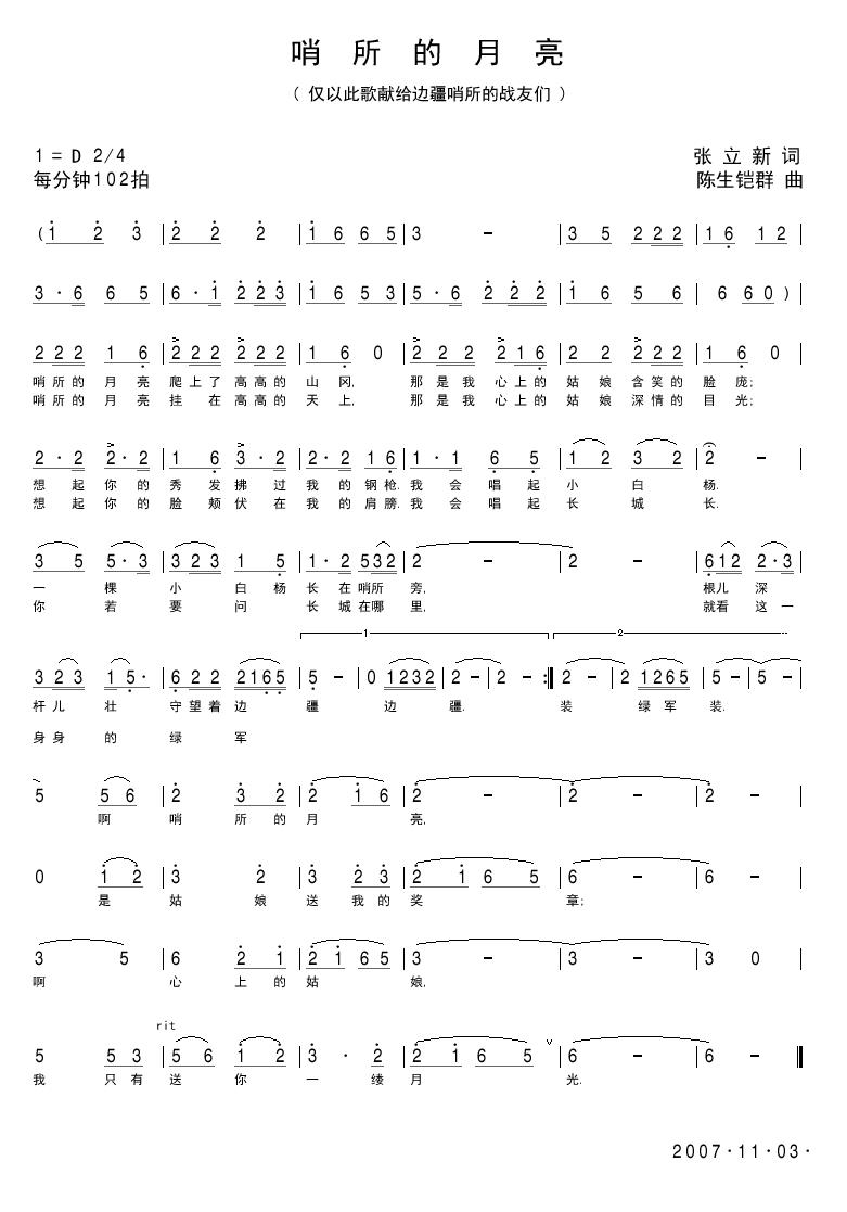 哨所的月亮简谱上传者为网友上传,原创作者为网络转载,歌曲原唱歌手为佚名,本简谱为图片格式,表现形式为,音乐性质为流行金曲。
