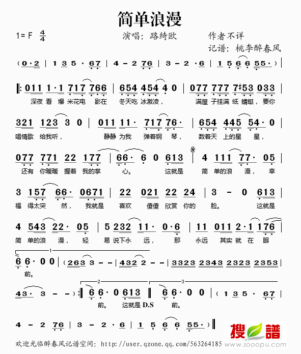 简单浪漫简谱上传者为网友上传,原创作者为网络转载,歌曲原唱歌手为佚名,本简谱为图片格式,表现形式为,音乐性质为流行金曲。