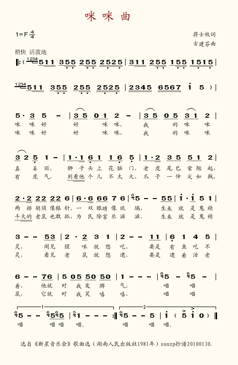 咪咪曲简谱上传者为网友上传,原创作者为网络转载,歌曲原唱歌手为佚名,本简谱为图片格式,表现形式为,音乐性质为流行金曲。