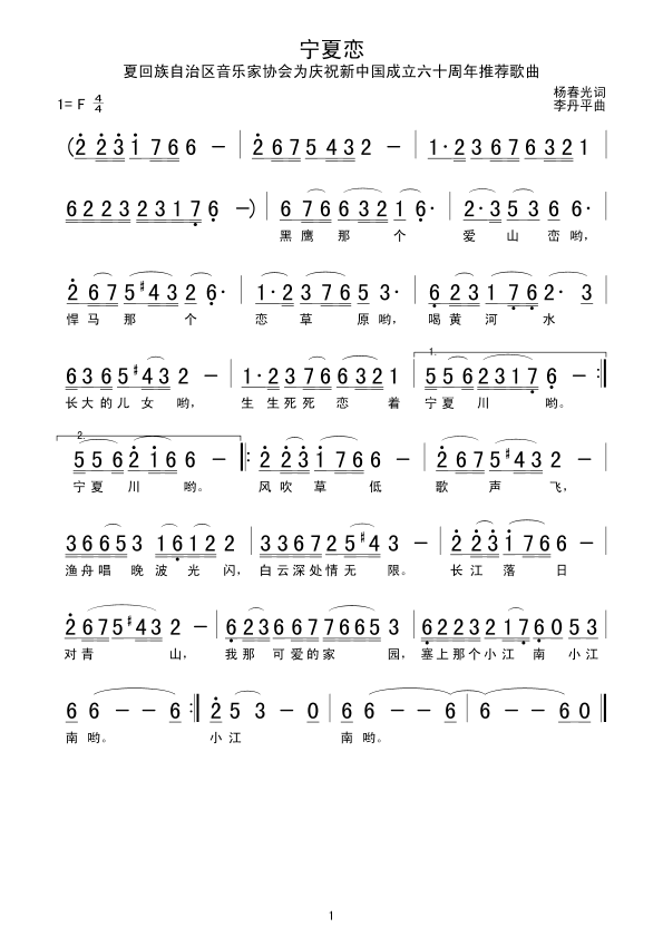 宁夏恋简谱上传者为网友上传,原创作者为网络转载,歌曲原唱歌手为佚名,本简谱为图片格式,表现形式为,音乐性质为流行金曲。