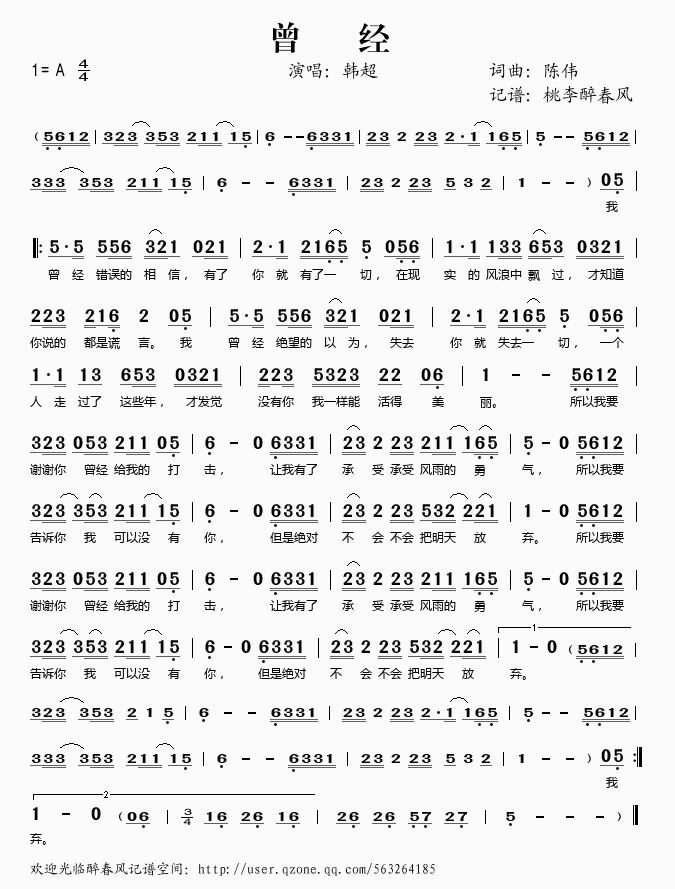 曾经简谱上传者为网友上传,原创作者为网络转载,歌曲原唱歌手为佚名,本简谱为图片格式,表现形式为,音乐性质为流行金曲。