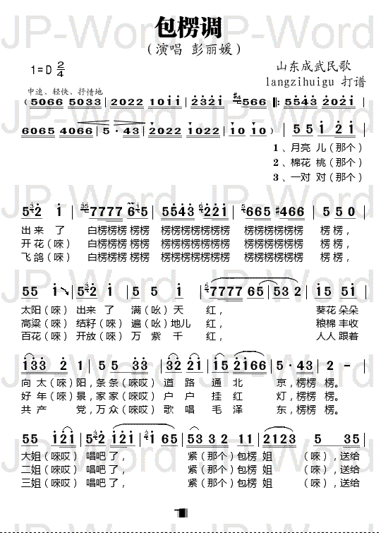 包楞调简谱上传者为网友上传,原创作者为网络转载,歌曲原唱歌手为佚名,本简谱为图片格式,表现形式为,音乐性质为流行金曲。