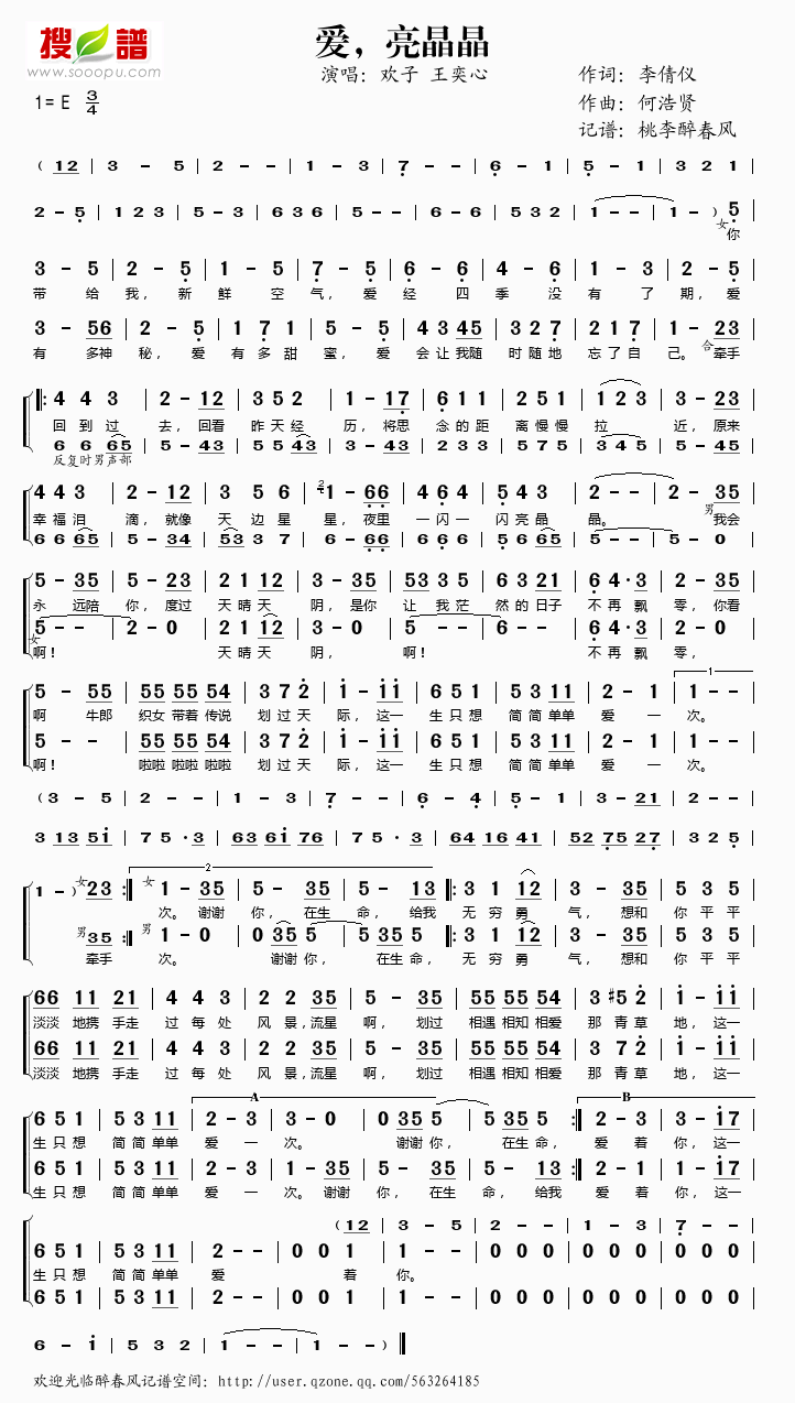 爱,亮晶晶简谱上传者为网友上传,原创作者为网络转载,歌曲原唱歌手为佚名,本简谱为图片格式,表现形式为,音乐性质为流行金曲。