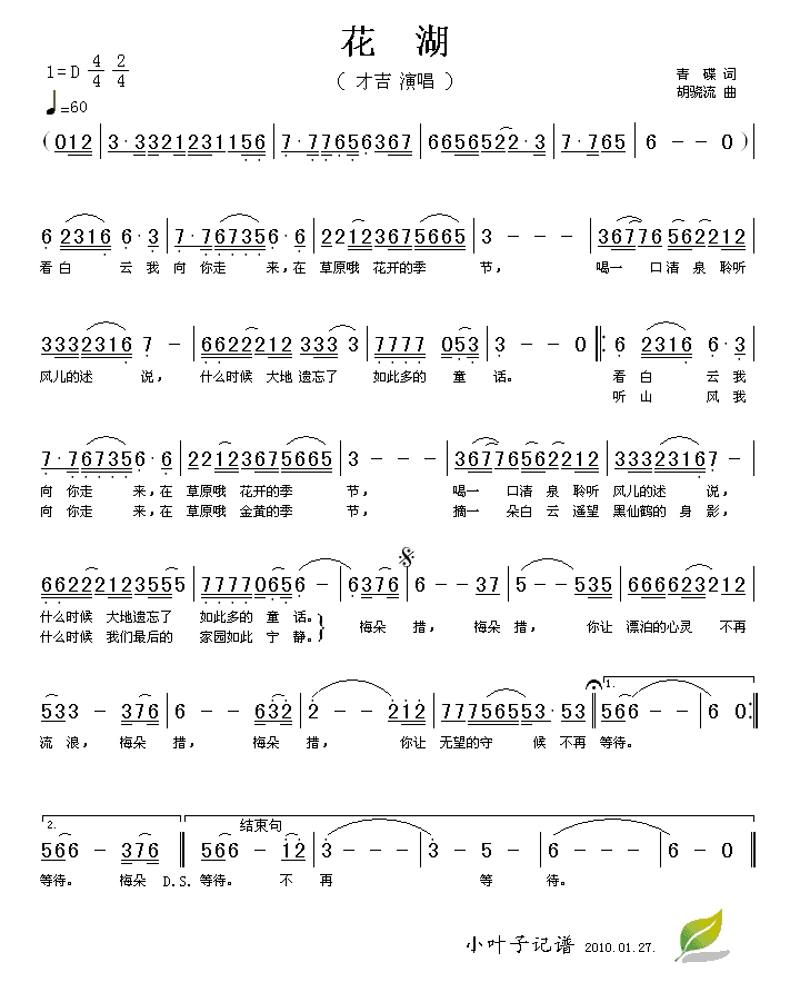 花湖简谱上传者为网友上传,原创作者为网络转载,歌曲原唱歌手为佚名,本简谱为图片格式,表现形式为,音乐性质为流行金曲。