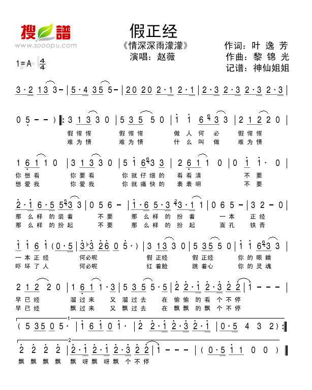 假正经《情深深雨濛濛》简谱上传者为网友上传,原创作者为网络转载,歌曲原唱歌手为佚名,本简谱为图片格式,表现形式为,音乐性质为流行金曲。