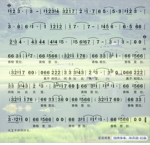 香格里拉简谱上传者为网友上传,原创作者为网络转载,歌曲原唱歌手为佚名,本简谱为图片格式,表现形式为,音乐性质为流行金曲。
