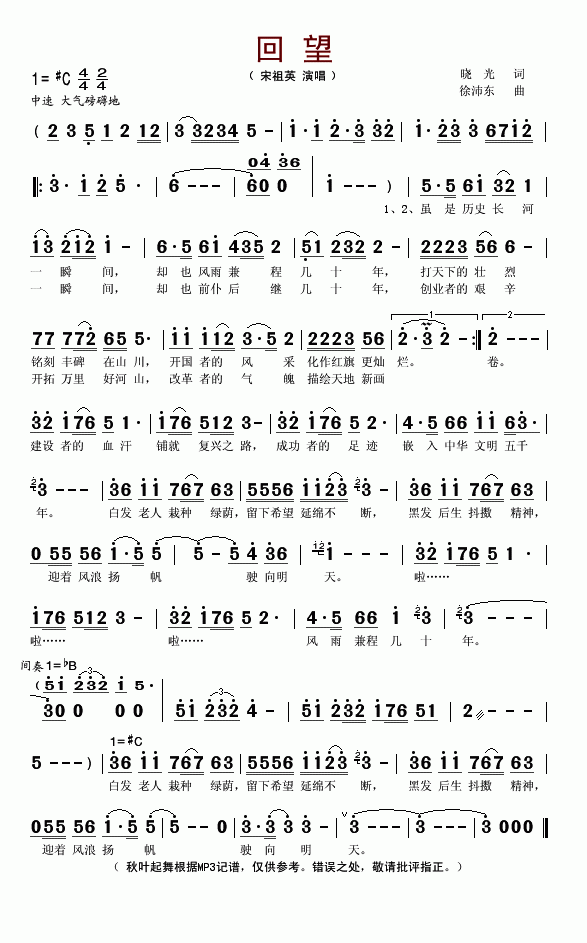 回望简谱上传者为网友上传,原创作者为网络转载,歌曲原唱歌手为佚名,本简谱为图片格式,表现形式为,音乐性质为流行金曲。