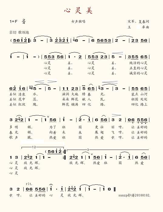 心灵美简谱上传者为网友上传,原创作者为网络转载,歌曲原唱歌手为佚名,本简谱为图片格式,表现形式为,音乐性质为流行金曲。
