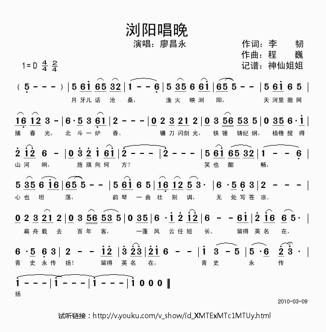 浏阳晚唱简谱上传者为网友上传,原创作者为网络转载,歌曲原唱歌手为佚名,本简谱为图片格式,表现形式为,音乐性质为流行金曲。