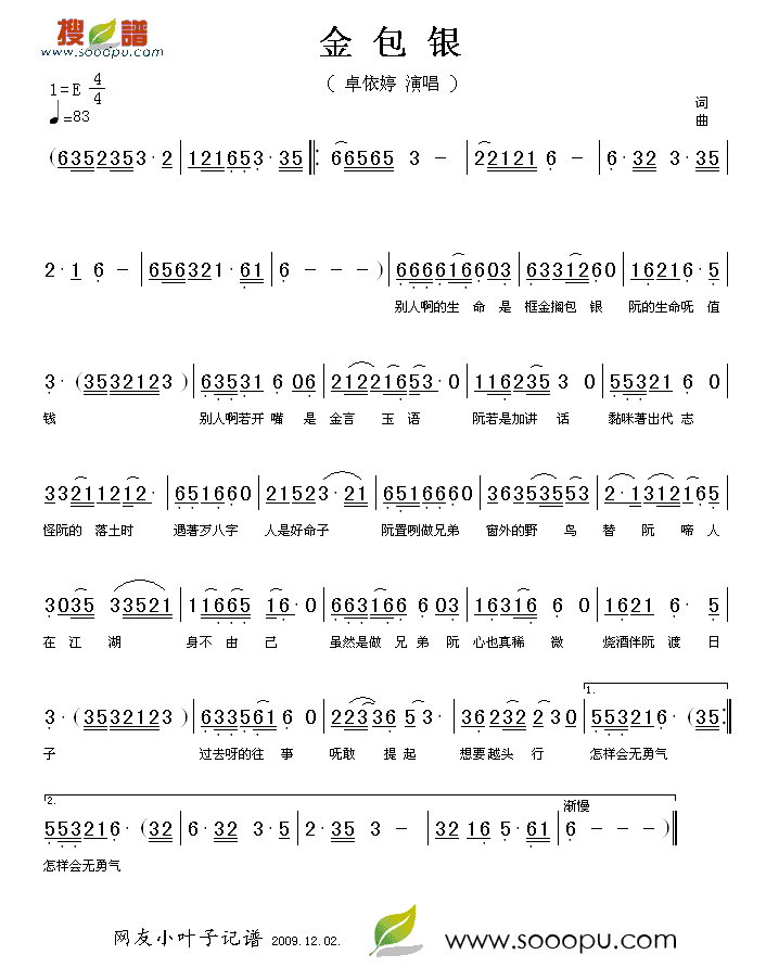 金包银简谱上传者为网友上传,原创作者为网络转载,歌曲原唱歌手为佚名,本简谱为图片格式,表现形式为,音乐性质为流行金曲。