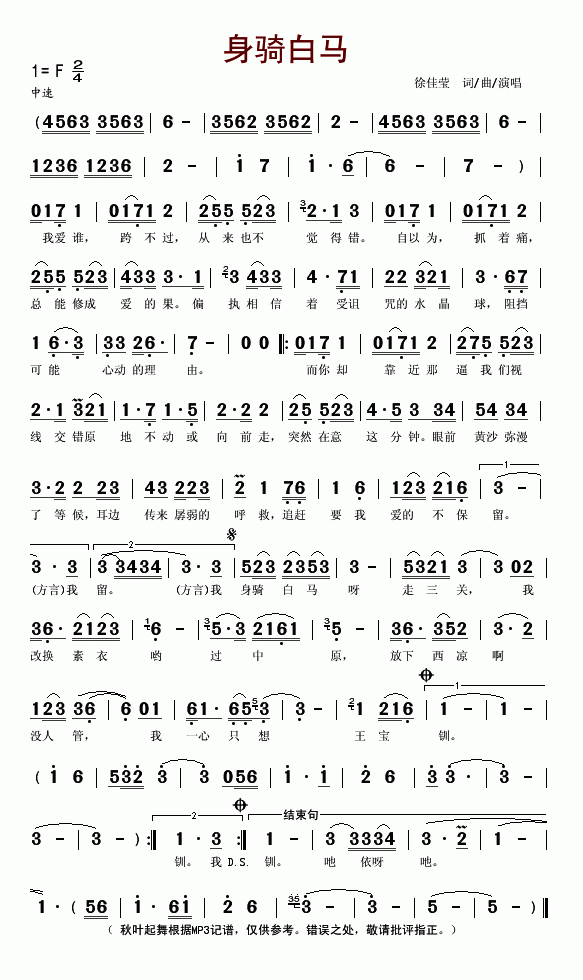身骑白马简谱上传者为网友上传,原创作者为网络转载,歌曲原唱歌手为佚名,本简谱为图片格式,表现形式为,音乐性质为流行金曲。