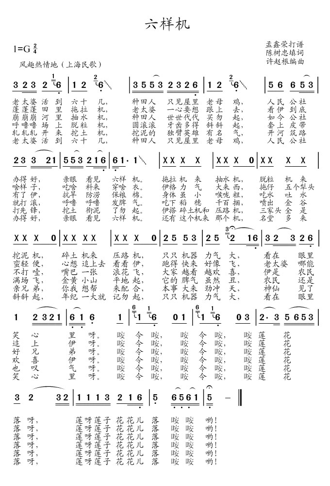 六样机简谱上传者为网友上传,原创作者为网络转载,歌曲原唱歌手为佚名,本简谱为图片格式,表现形式为,音乐性质为流行金曲。