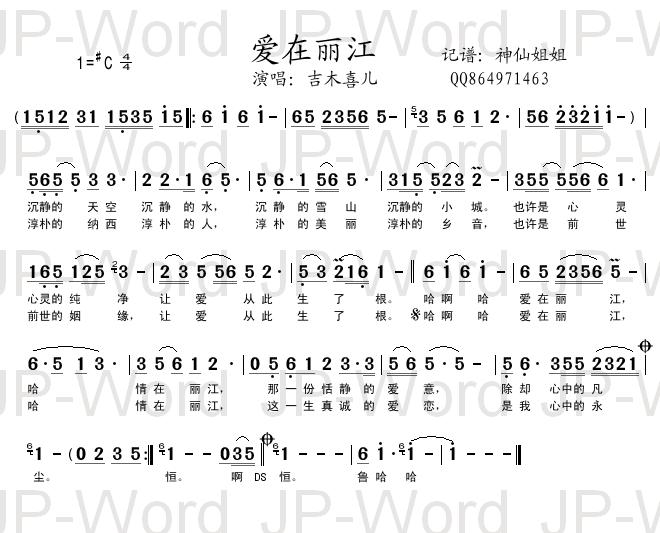 爱在丽江简谱上传者为网友上传,原创作者为网络转载,歌曲原唱歌手为佚名,本简谱为图片格式,表现形式为,音乐性质为流行金曲。