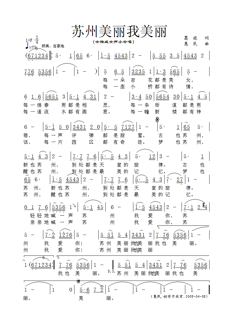 苏州美丽我美丽简谱上传者为网友上传,原创作者为网络转载,歌曲原唱歌手为佚名,本简谱为图片格式,表现形式为,音乐性质为流行金曲。