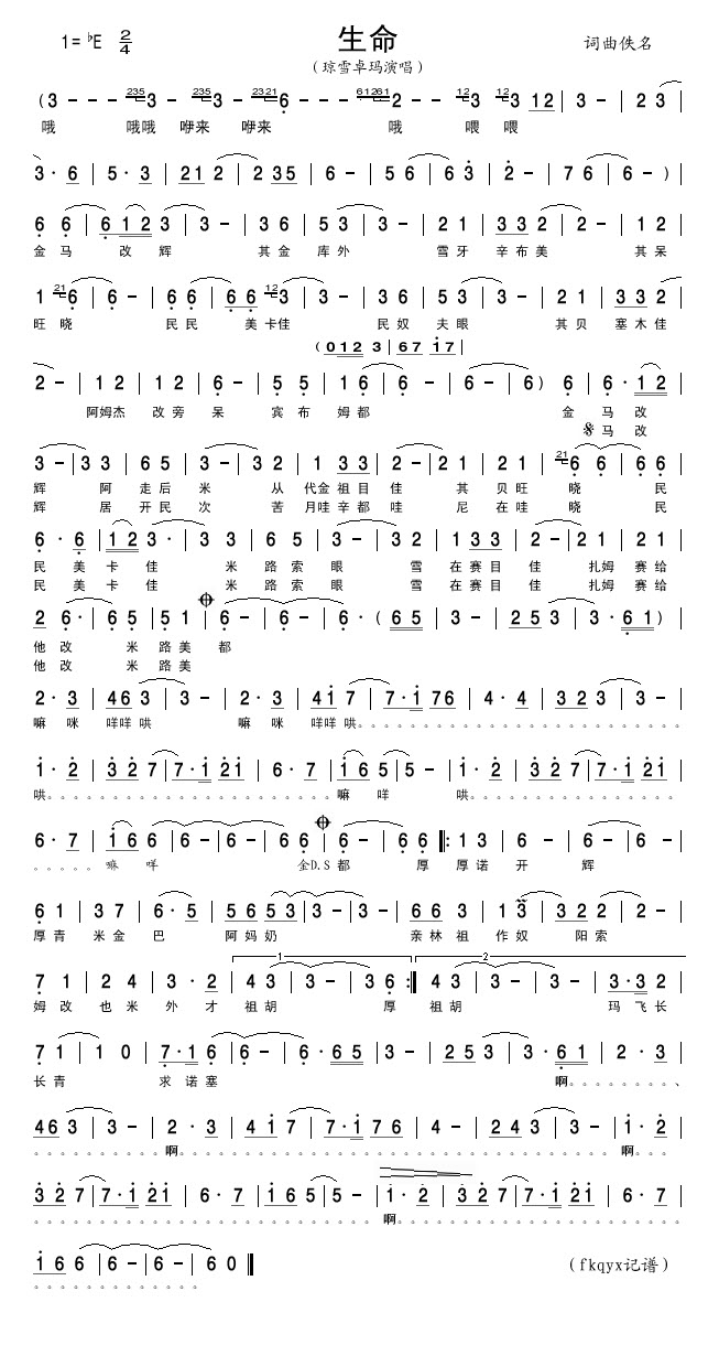 生命简谱上传者为网友上传,原创作者为网络转载,歌曲原唱歌手为佚名,本简谱为图片格式,表现形式为,音乐性质为流行金曲。