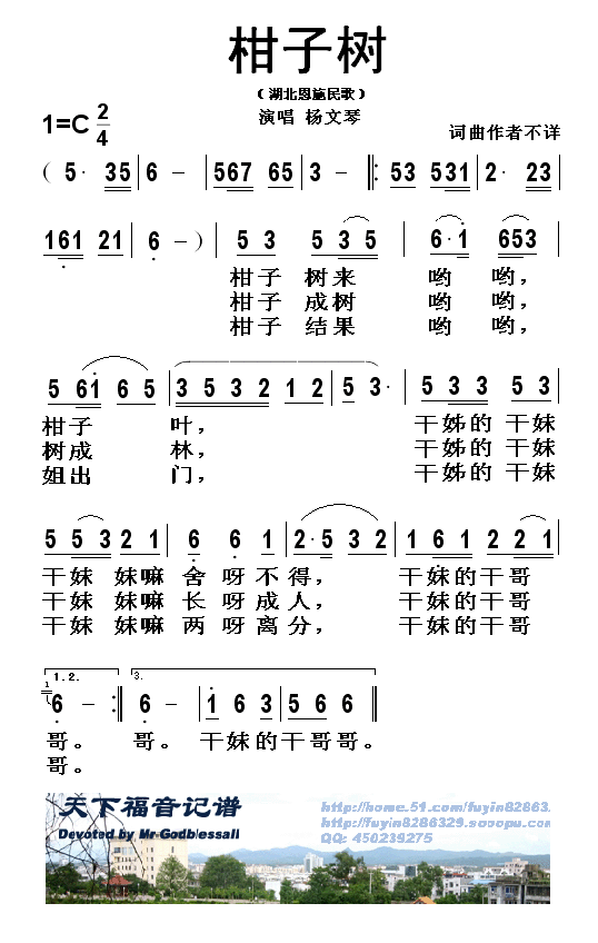 柑子树简谱上传者为网友上传,原创作者为网络转载,歌曲原唱歌手为佚名,本简谱为图片格式,表现形式为,音乐性质为流行金曲。