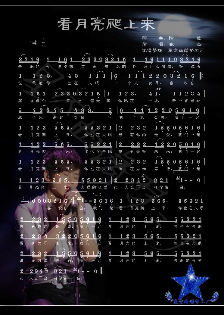 看月亮爬上来简谱上传者为网友上传,原创作者为网络转载,歌曲原唱歌手为佚名,本简谱为图片格式,表现形式为,音乐性质为流行金曲。