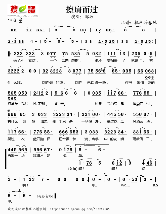 擦肩而过简谱上传者为网友上传,原创作者为网络转载,歌曲原唱歌手为佚名,本简谱为图片格式,表现形式为,音乐性质为流行金曲。