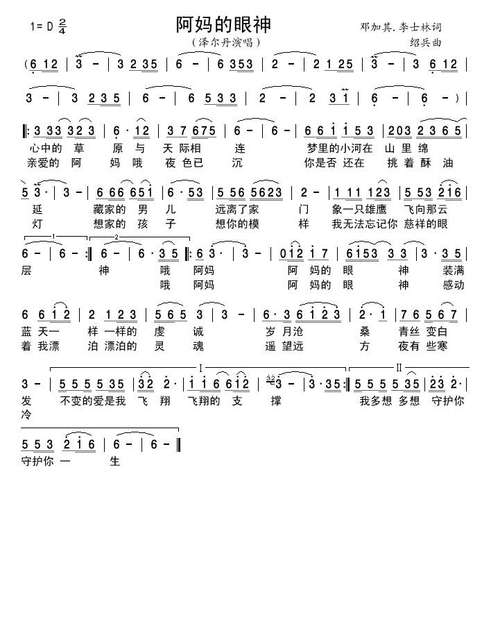 阿妈的眼神简谱上传者为网友上传,原创作者为网络转载,歌曲原唱歌手为佚名,本简谱为图片格式,表现形式为,音乐性质为流行金曲。
